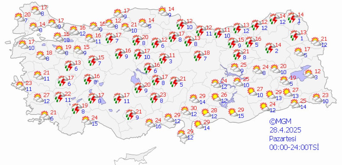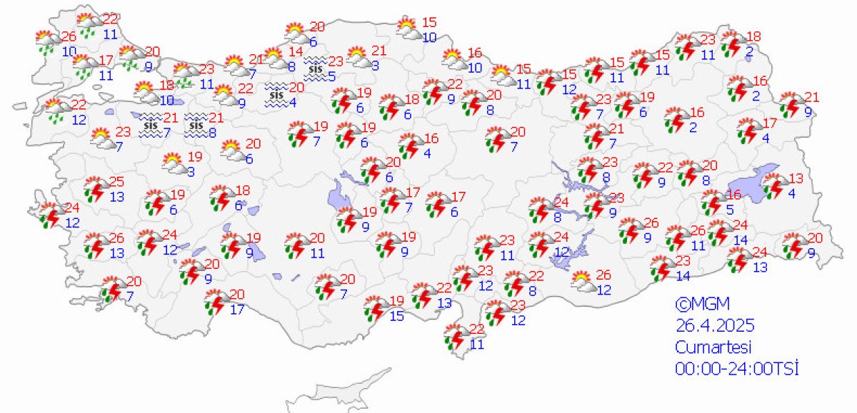 Meteorolojiden gelen son kestirimlere nazaran ise pazar günüyle birlikte hava şartlarında ani ve sert değişim yaşanması bekleniyor.