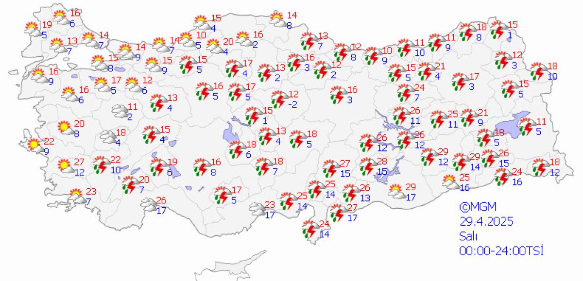 Sıcaklığın mevsim normallerinin altına ineceği aktarılırken rüzgarla yer yer sağanak ve kısa periyodik gök gürültülü yağışların da tesirli olacağının varsayım edildiği bildirildi.