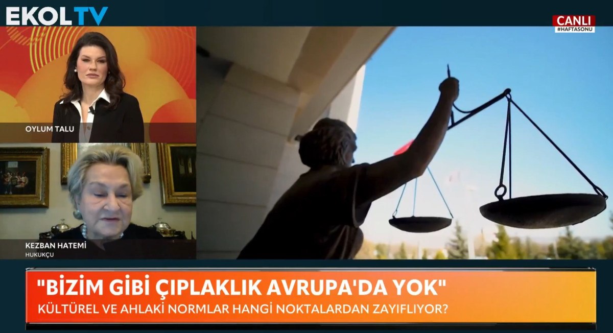 Ekol TV’de Oylum Talu’nun sunduğu HaftaSonu programına konuk olan hukukçu Kezban Hatemi, toplumda son yıllarda giderek artan “ahlaki erozyona” dikkat çekti.