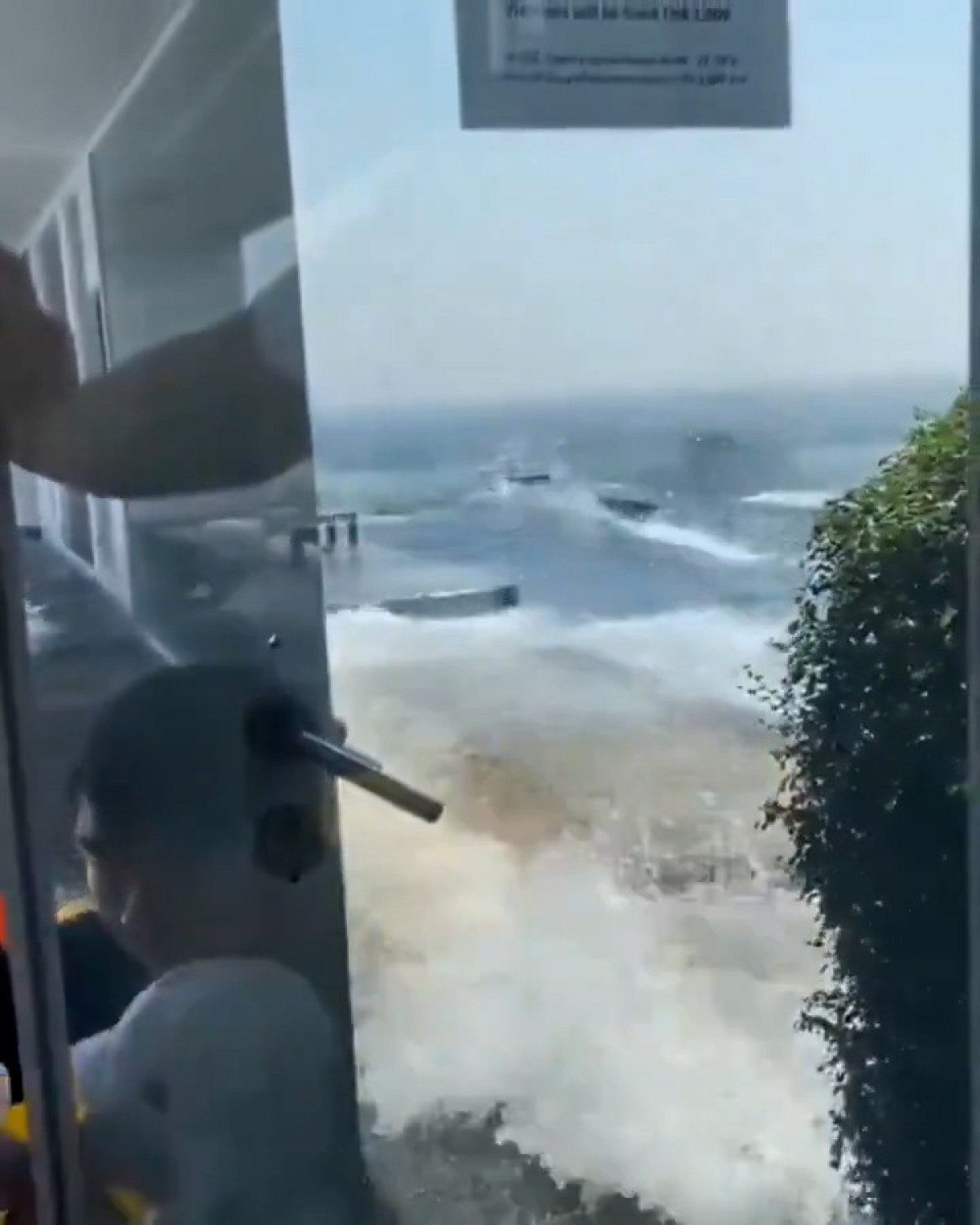 O sırada havuzda olanların kaçmak yerine olayı görüntülediği ve hatta havuzdan çıkmak gereğini duymadıkları imgelere yansıdı.