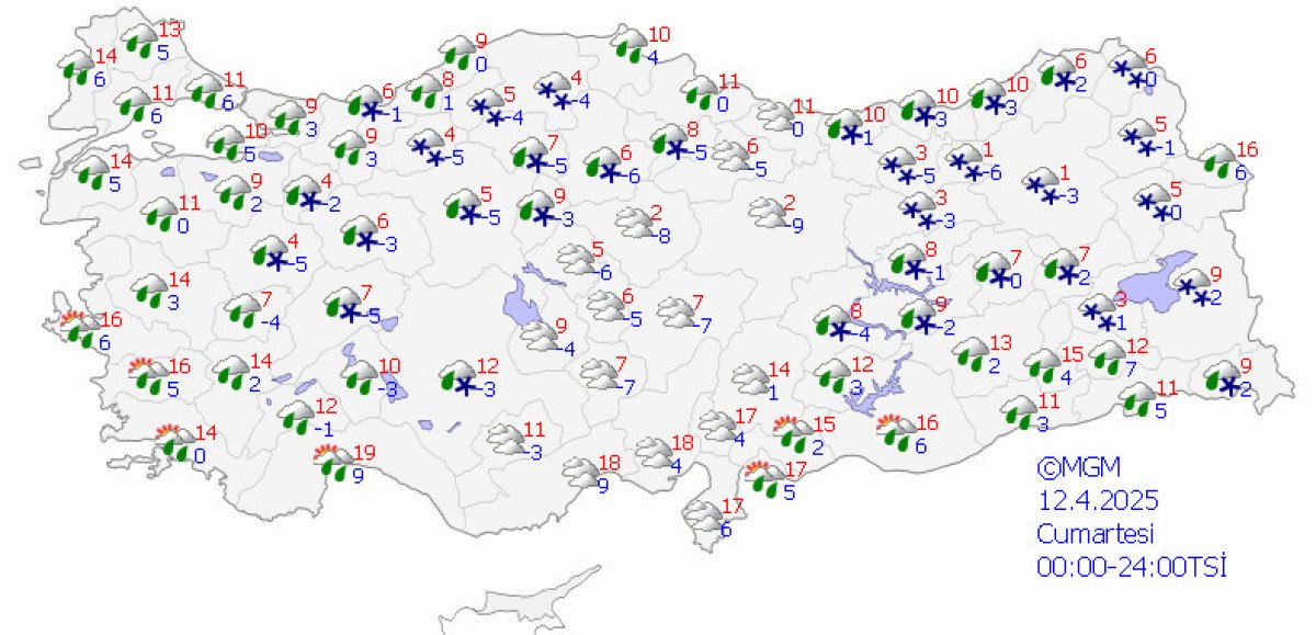 Kıyı kesitlerde ile Marmara ve Güneydoğu Anadolu’da yağmur ve sağanak, yağış alan başka yerlerde karla karışık yağmur ve kar halinde görülmesi beklenen yağışların, Rize ve Trabzon ile Giresun’un doğu kısımlarında yer yer kuvvetli olması bekleniyor.