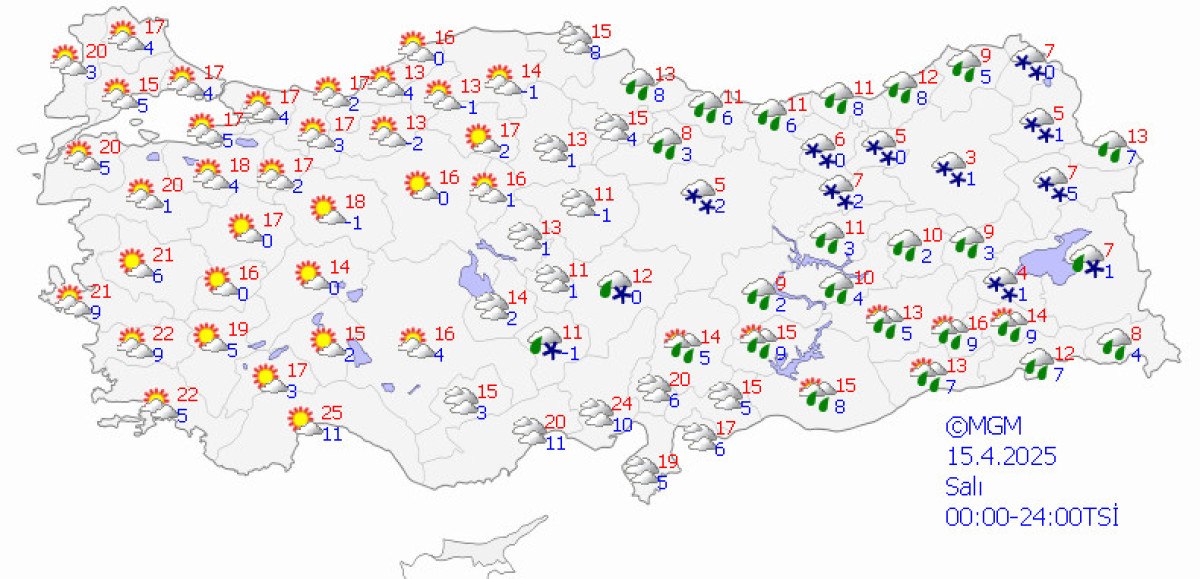Meteoroloji Genel Müdürlüğü varsayımlarına nazaran, bugün yurt genelinin kesimli ve çok bulutlu olması bekleniyor.
