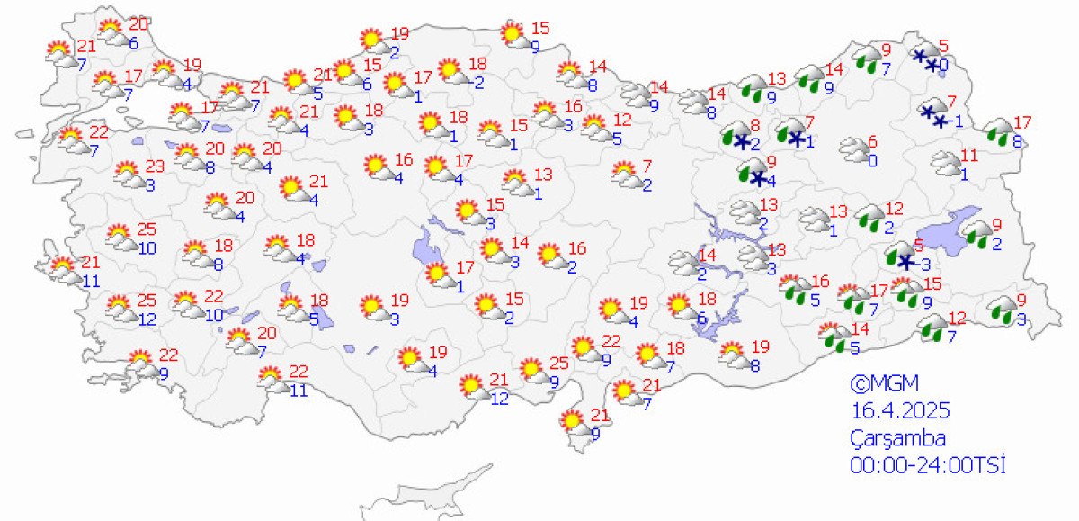 Önümüzdeki hafta ortasına kadar sıcaklıklar, Ankara’da 16, İstanbul’da 19, İzmir’de 21, Antalya’da 25, Adana’da 25, Diyarbakır’da 16, Samsun’da 14 dereceye kadar yükselecek.